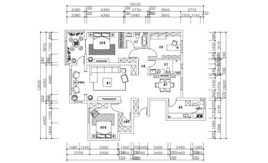 本案的風格為輕美式,裝修的特點是簡潔實用,色彩是明亮環(huán)保,是非常典型的“輕裝修、重裝飾”的風格。案例中的美式家具最迷人之處還在于造型、紋路、雕飾和色調(diào)細膩高貴。