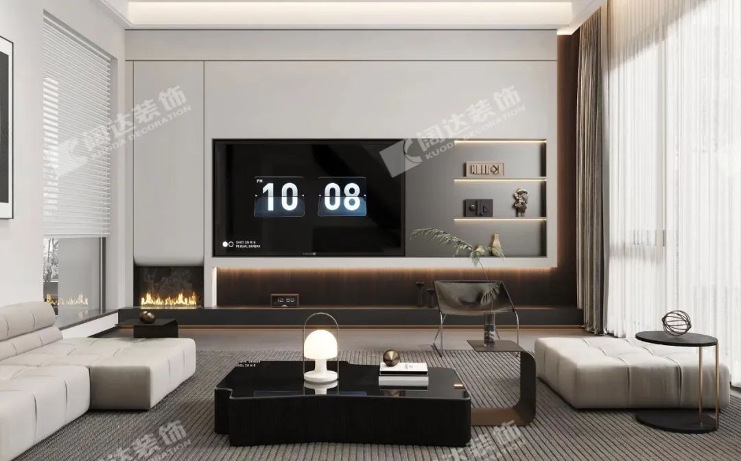客廳電視背景墻:運用簡約、當代的手法去布局,借以保持空間的質感,外表平靜,卻承載了生活里的豐富。像是藝術家康定斯基在畫布上自由地發揮想象空間。